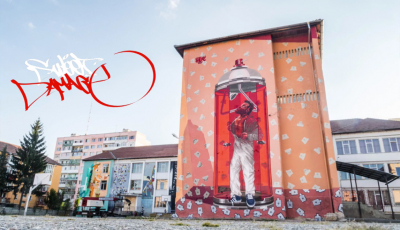 Un grup de bucureșteni desenează pereții Colegiului Economic din Sibiu