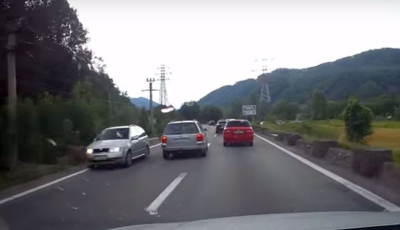 VIDEO – Depășire nebunească pe Valea Oltului. Accident evitat la limită