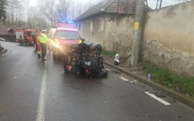 Doi bărbați răniți grav după ce au intrat cu ATV-ul într-un copac, la Merghindeal. Elicopterul SMURD chemat în ajutor