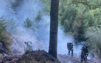 Incendiul izbucnit din cauza accidentului cu ATV încă nu a fost stins. „Intervenția este una de lungă durată și foarte dificilă”
