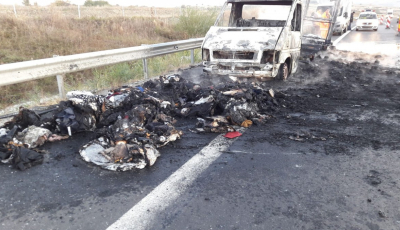 FOTO-Două mașini în flăcări pe autostrada. Una a ars complet