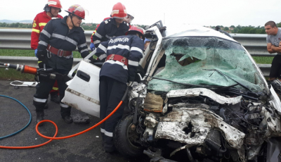 FOTO-Accident pe autostradă, lângă Săliște. Șoferița a ajuns la spital