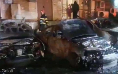 Cinci autoturisme au ars în parcarea unui bloc din zona centrală a municipiului Galaţi
