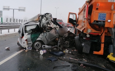 Accident mortal pe A1, între o mașină și un utilaj de deszăpezire. Trei persoane au murit
