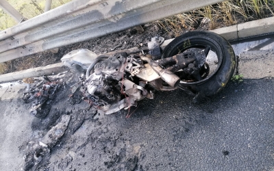 O motocicletă a luat foc pe A1, din cauza unui scurtcircuit