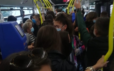 VIDEO-Înghesuială de nepermis în pandemie. Până la școală, elevii riscă să se îmbolnăvească în Tursib
