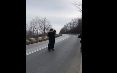 VIDEO Un preot a sfințit o curbă din județul Bacău, loc în care se produc frecvent accidente