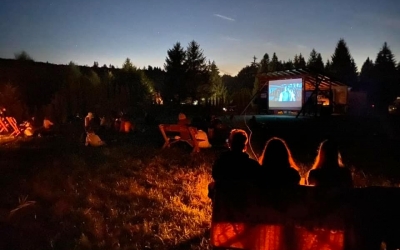 Cinema în pădure creat de proprietarii a două pensiuni din Porumbacu de Sus