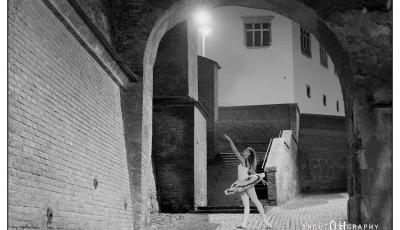 Un oraș, o noapte, o balerină. Fotografiile fermecătoare cu Sibiul