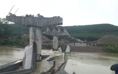 Grinzile unui pod în construcţie de pe râul Someş, prăbuşite de vijelie. „ A ridicat grinzile şi le-a răsturnat de la 20 de metri înălţime”