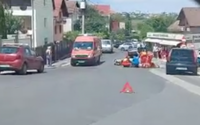 Bicicletă pe care se aflau două fetițe, lovită de mașină, în Mediaș. Șoferul a fugit