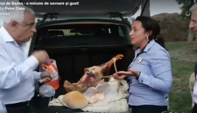 Ministrul Daea, alături de prefectul Sibiului și senatorul N. Avram, promovează porcul de Bazna, mâncând jambon din portbagajul mașinii | video foto