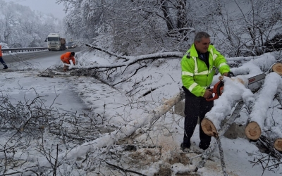 Zăpada din martie a doborât copaci pe drumul dintre Mediaș și Bârghiș
