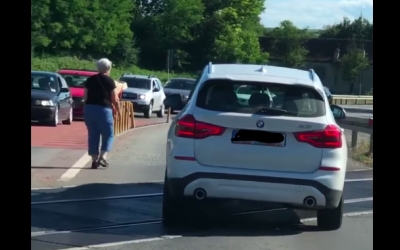 VIDEO-Poliția îl caută pe șoferul care a trecut calea ferată când venea trenul