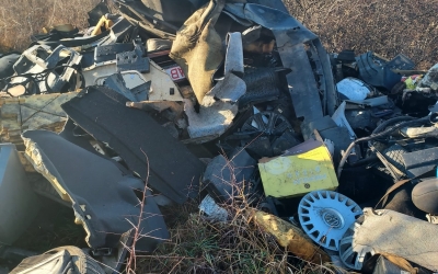 FOTO – Câmpurile Sibiului, groapă de gunoi pentru vecini: Mașini dezmembrate în Alba, aruncate și incendiate în județul Sibiu