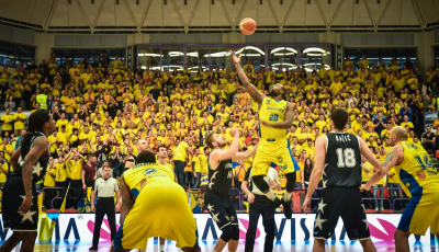 În galben în Piața Mică! Meciul de baschet CSU-Steaua, pe un ecran de mari dimensiuni