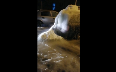Un sibian și-a găsit mașina sub un strat gros de gheață, în urma unei avarii Apă Canal