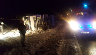 TIR răsturnat lângă Continental. Cabina i-a prins brațul unei femei
