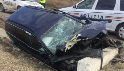 Accident pe DN 14. O mașină în care se afla un băiețel de trei ani s-a oprit într-un cap de pod