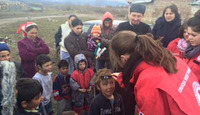 Voluntarii Crucii Roșii Sibiu și un preot au oferit articole de igienă copiilor din Turnișor