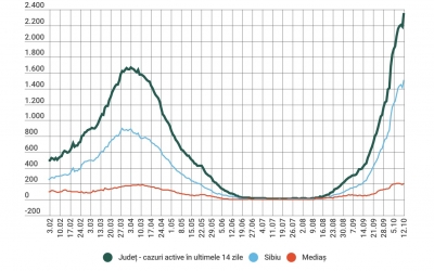 Peste 1.400 de cazuri active în orașul Sibiu - 8,25 la mie incidență. 14 localități din județ sunt în scenariul roșu