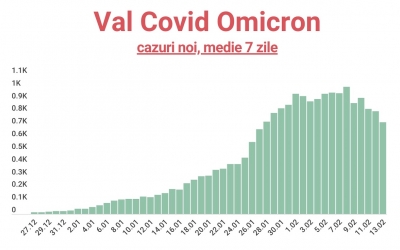 Tot mai puține cazuri. Valul Omicron a scăzut la jumătate față de vârful de la începutul lunii februarie