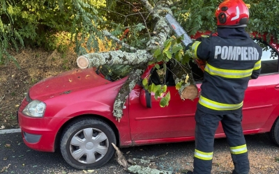 Un copac a căzut pe o mașină staționată într-o parcare din zona Hula Bradului. Nu sunt victime