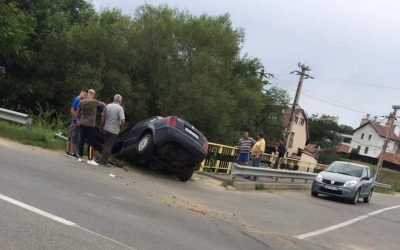 FOTO Un șofer aproape a ajuns cu mașina în râu, la Rășinari