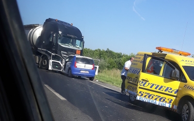 Accident frontal la Veștem. Cisterna a intrat pe contrasens
