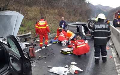 Accident în lanț pe autostradă, la Aciliu. Trafic blocat complet pe un sens