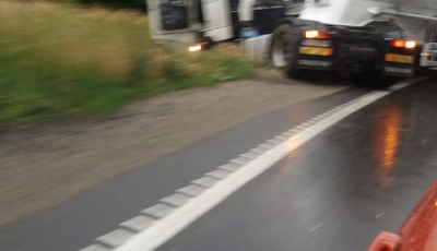 DN1, parțial blocat. Cisternă ieșită în decor