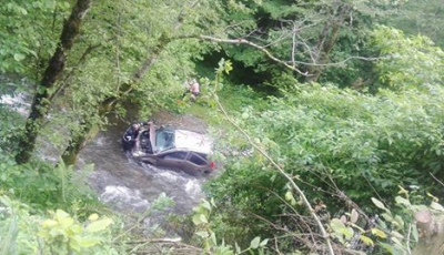 Mașină răsturnată în râul Avrig după ce a căzut 10 metri într-o râpă