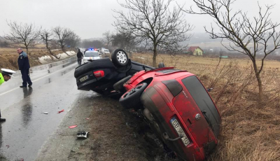 Cinci persoane rănite, una încarcerată, două mașini răsturnate: accident la Daia
