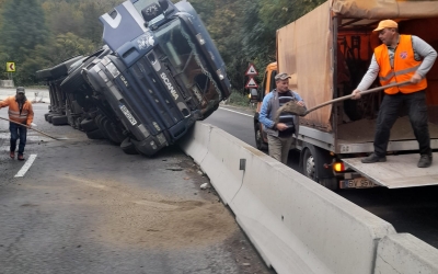 Camion înmatriculat în Sibiu implicat într-un accident în județul Brașov