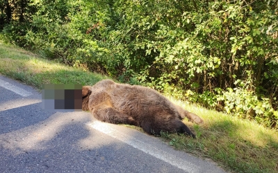 Urs lovit de o mașină, între Cisnădie și Șelimbăr, aproape de ora prânzului