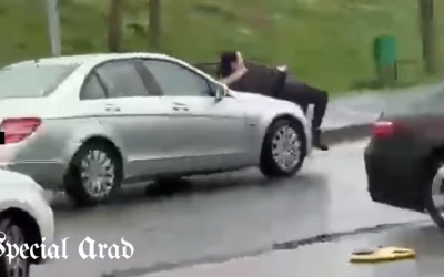 Ceartă pe un loc de parcare, în Arad. O șoferiță pleacă cu o femeie pe capotă, scena fiind filmată de martori
