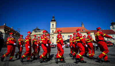 Exercițiu. 100 de pompieri sibieni au plecat să salveze oamenii de sub dărâmăturile din Capitală