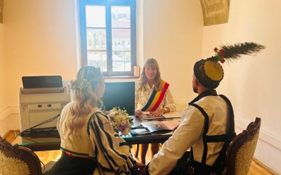 Primăria Sibiu a început să emită certificate de căsătorie digitale: mirii și nașii își lasă semnăturile pe un ecran tactil în loc de hârtie
