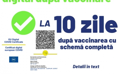 Certificatul digital se validează după 10 zile de la vaccinarea cu schemă completă