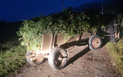Tânăr sibian prins cu o căruță de cetină de brad furată din pădure. Din amenda primită putea cumpăra zeci de copaci