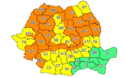 Cod portocaliu de fenomene meteo periculoase în 25 de localități sibiene