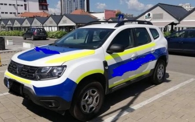 Mașina firmei sibiene confundată cu mașina poliției nu mai arată la fel. Dosarul penal este în curs de finalizare