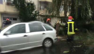 Urmările unei ploi de vară: copaci căzuți, mașini avariate...