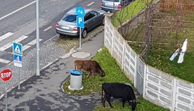 Sibiu, sat frumos. Vaci pe stradă, în cartierul Valea Aurie