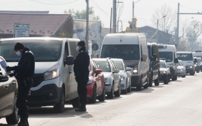 Coadă în trafic la ieșirea din Sibiu, ca urmare a controalelor instituite în carantină. Sfaturile Poliției