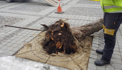 VIDEO Cât de ușor este trântit la pământ un copac din centrul Sibiului