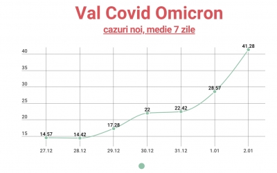 95 de cazuri noi. Omicron a adus media cazurilor noi zilnice de la 14, la 53 în 7 zile