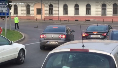 Video | Un polițist a oprit traficul ca ajute o rață cu mai mulți boboci să treacă strada