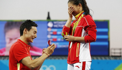 FOTO. Vicecampioană la sărituri în apă, cerută în căsătorie la ceremonia de premiere de la JO
