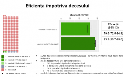 Primul studiu privind eficiența vaccinurilor COVID în România: persoanele vaccinate au un risc de deces de 14 ori mai mic și un risc de infectare de 12 ori mai mic